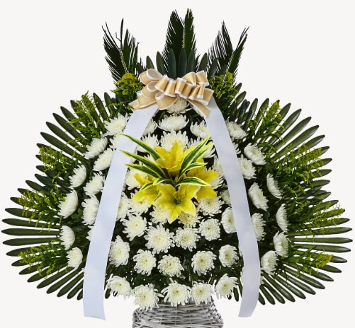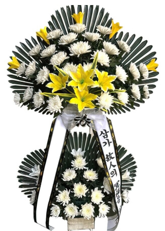 - 전통형 화환: 국화 위주의 흑백 디자인 (지역 관습 반영)